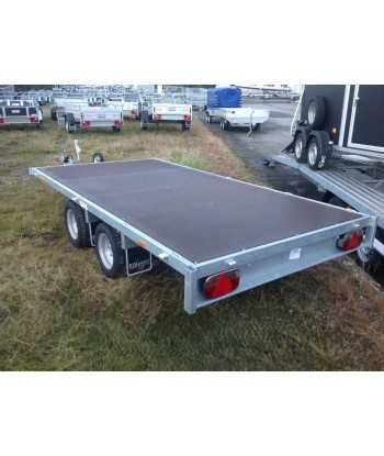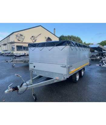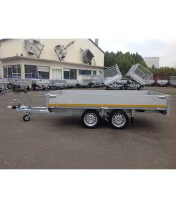 Ausstattung: Der Anhänger wird mit folgender Ausstattung geliefert: Bordwände, Gitteraufsätze, Stützrad, abgesenkter Boden, Rampen.